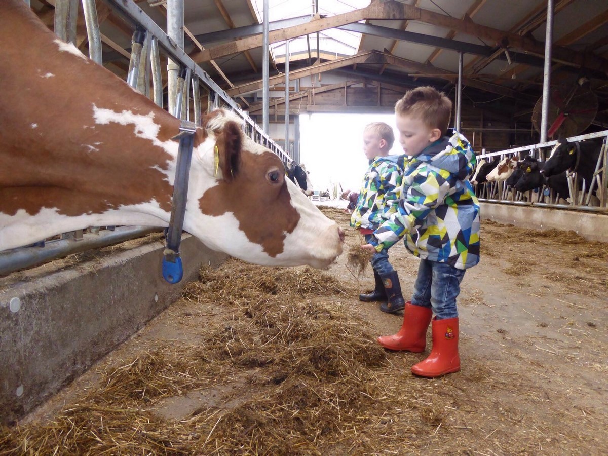 Kinderen zijn bij ons altijd welkom in de stal! Help ons mee bij de koeien, de kalfjes drinken geven met de fles, kippen voeren en natuurlijk verse eitjes rapen!